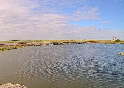 Description: Streaming live cam from Bayou Vista Cam near Galveston, Texas reveals trains thundering over the bridges and sunsets blaze across the horizon